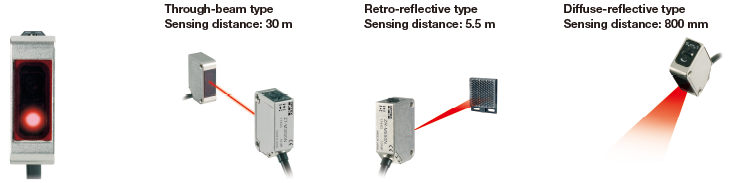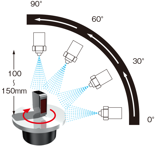 Equipped with a newly developed 4 element red LED light source. In addition to minimizing the decreases in emitted light that occur over time, it features a through-beam type sensor with a longest-in-class 30 m sensing distance! Not only is detection over long distances possible, but it is also tolerant against dust and fine particles. Achieved a degree of protection on IP66 that is tough against humidity, water, steam cleaning, etc. Sensor features a tough design that doesn’t break even when exposed to high-pressure washing on food processing machinery or when used in severe environments. Of course, it has also cleared IP67. IP69K is a protection rating stipulated by German standard DIN40050 Part 9. Sensors are placed on a turntable and rotated 5 times per minute while being sprayed with water under the following conditions. * IP69k does not guarantee operation under the above conditions. Water or oil that adhere to the optical surface could cause light to refract and prevent detection from being performed correctly.Employs a newly developed high-brightness 4 element LED