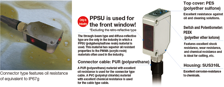•Degree of protection: IP69K (cable type), Equivalent to IP67g (connector type)